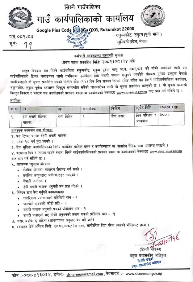 » कर्मचारी आवश्यकता सम्बन्धि सूचना ।
