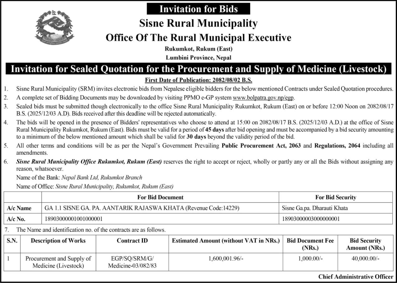 सार्वजनिक खरिद/बोलपत्र सूचना