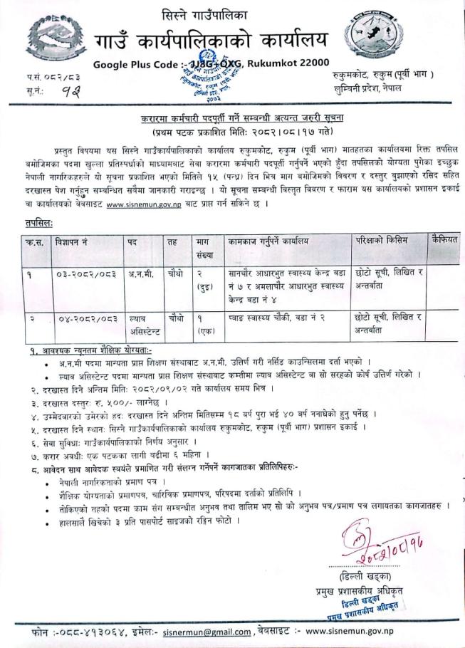 » करारमा कर्मचारी पदपुर्ती गर्ने सम्बन्धी सुचना ।