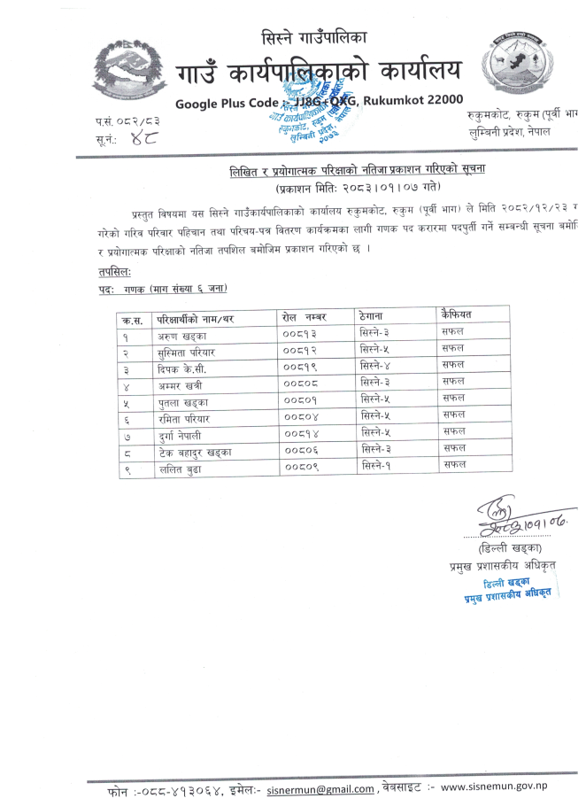 लिखित तथा प्रयोगात्मक परिक्षाको नतिजा प्रकाशन गरिएको सूचना ।
