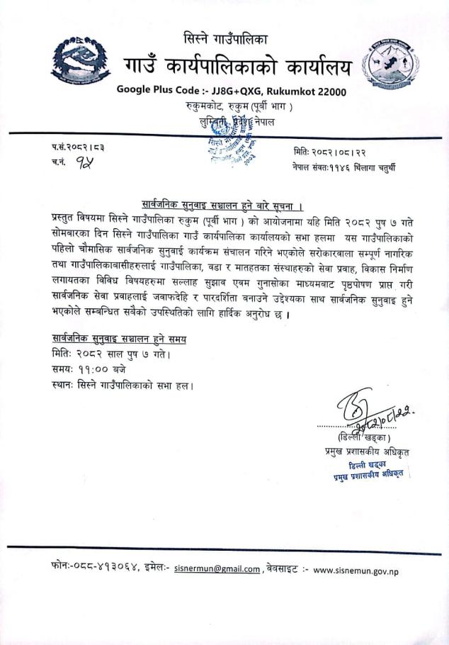 » सार्वजनिक सुनुवाई सन्चालन हुने सम्बन्धि सूचना ।